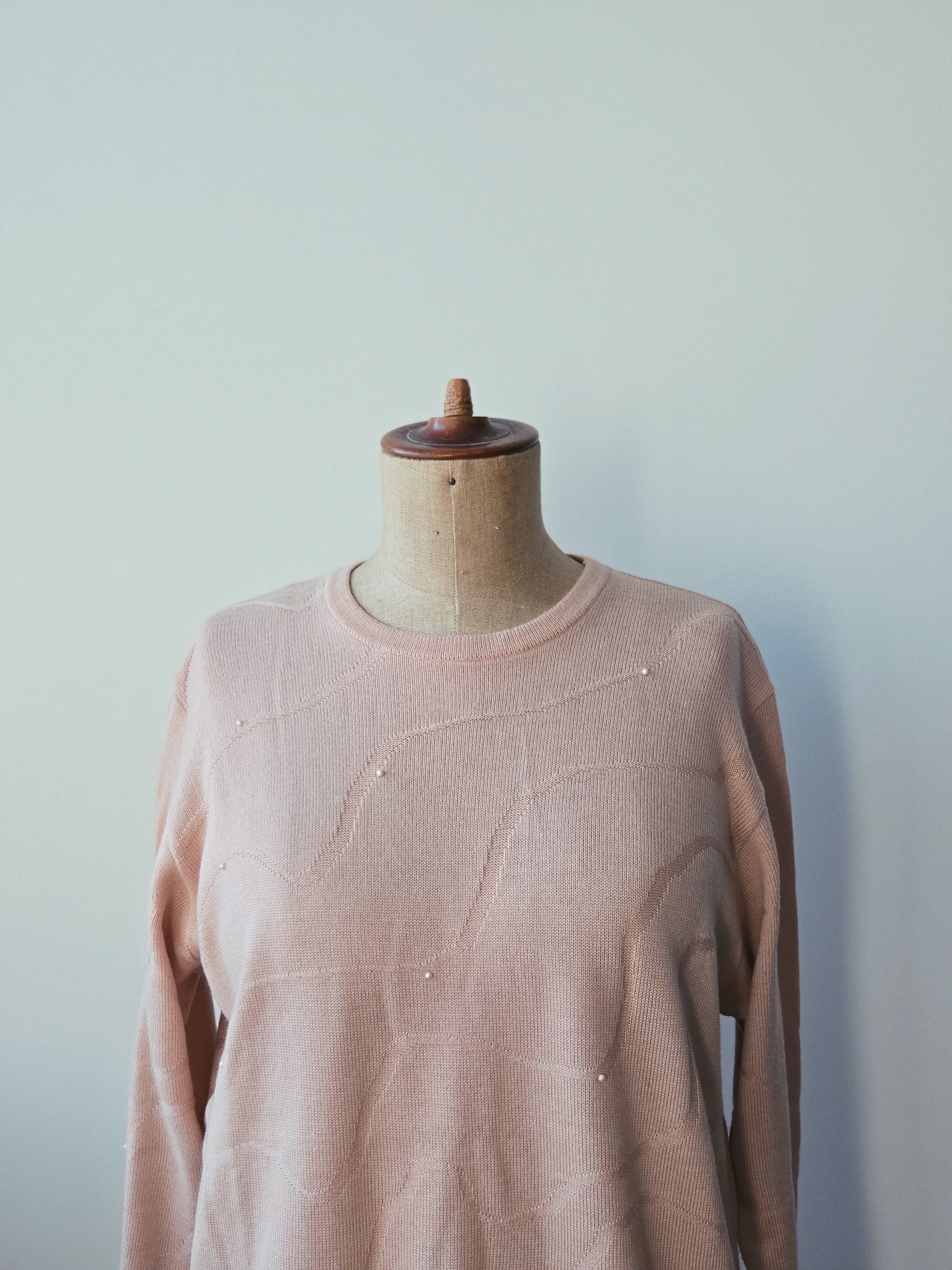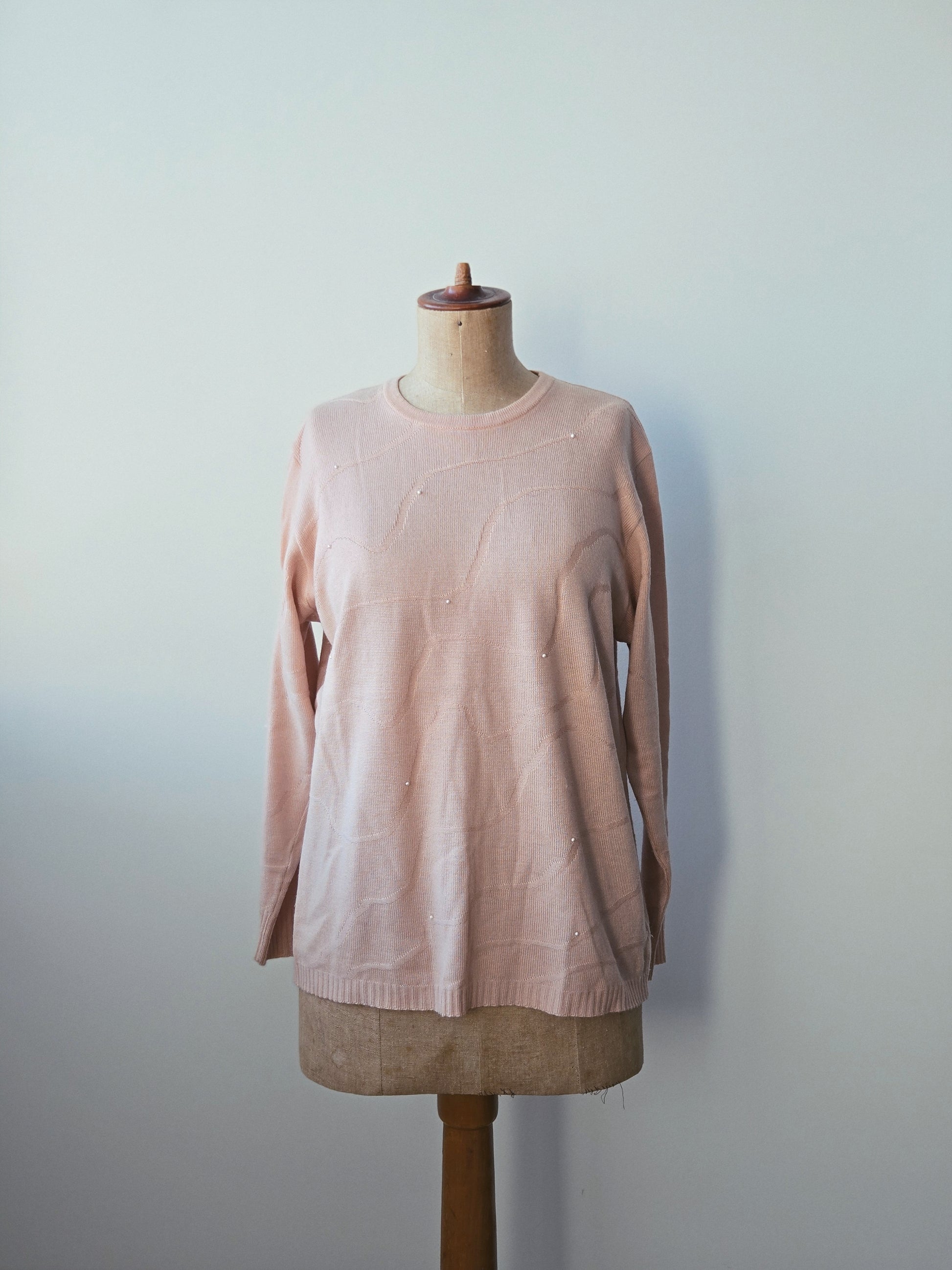 pre-loved Strickpullover mit Perlen, hellrosa